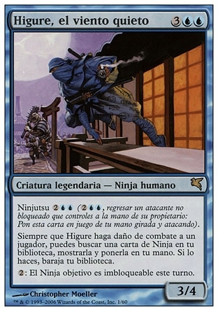 | Rules | Ninjutsu (, Return an unblocked attacker you control to hand: Put this card onto the battlefield from your hand tapped and attacking.) Whenever Higure, the Still Wind deals combat damage to a player, you may search your library for a Ninja card, reveal it, put it into your hand, then shuffle. : Target Ninja creature can't be blocked this turn. |