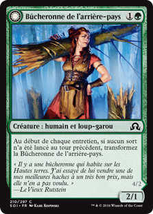 | Rules | At the beginning of each upkeep, if no spells were cast last turn, transform Hinterland Logger. // Trample At the beginning of each upkeep, if a player cast two or more spells last turn, transform Timber Shredder. |