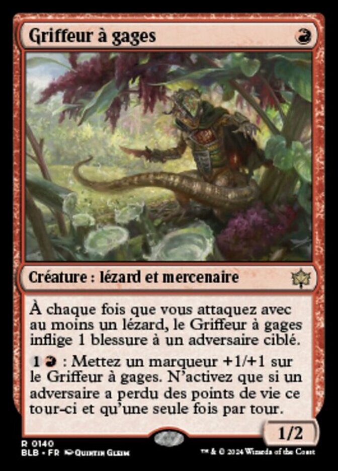 | Rules | Whenever you attack with one or more Lizards, Hired Claw deals 1 damage to target opponent. : Put a +1/+1 counter on Hired Claw. Activate this ability only if an opponent has lost life this turn and only once each turn. |