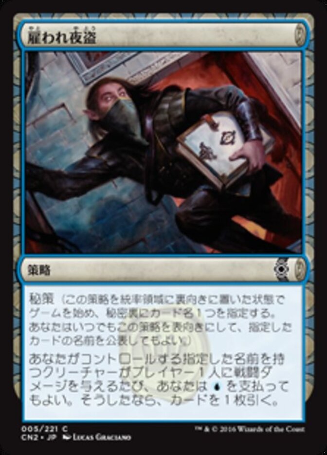 | Rules | Hidden agenda (Start the game with this conspiracy face down in the command zone and secretly choose a card name. You may turn this conspiracy face up any time and reveal that name.) Whenever a creature you control with the chosen name deals combat damage to a player, you may pay . If you do, draw a card. |