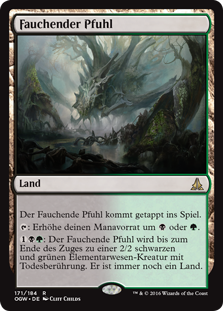 | Rules | Hissing Quagmire enters the battlefield tapped. : Add or . : Hissing Quagmire becomes a 2/2 black and green Elemental creature with deathtouch until end of turn. It's still a land. |