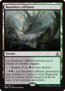 | Rules | Hissing Quagmire enters the battlefield tapped. : Add or . : Hissing Quagmire becomes a 2/2 black and green Elemental creature with deathtouch until end of turn. It's still a land. |