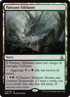 | Rules | Hissing Quagmire enters the battlefield tapped. : Add or . : Hissing Quagmire becomes a 2/2 black and green Elemental creature with deathtouch until end of turn. It's still a land. |