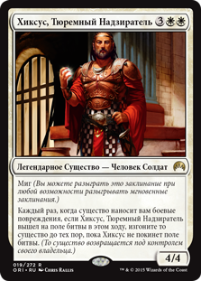 | Rules | Flash (You may cast this spell any time you could cast an instant.) Whenever a creature deals combat damage to you, if Hixus, Prison Warden entered the battlefield this turn, exile that creature until Hixus leaves the battlefield. (That creature returns under its owner's control.) |