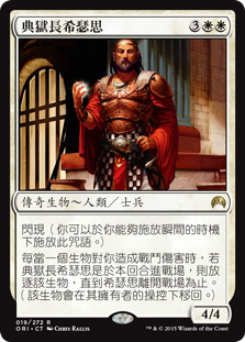 | Rules | Flash (You may cast this spell any time you could cast an instant.) Whenever a creature deals combat damage to you, if Hixus, Prison Warden entered the battlefield this turn, exile that creature until Hixus leaves the battlefield. (That creature returns under its owner's control.) |