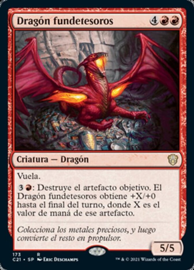 | Rules | Flying : Destroy target artifact. Hoard-Smelter Dragon gets +X/+0 until end of turn, where X is that artifact's mana value. |