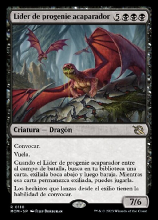 | Rules | Convoke Flying When Hoarding Broodlord enters the battlefield, search your library for a card, exile it face down, then shuffle. For as long as that card remains exiled, you may play it. Spells you cast from exile have convoke. |