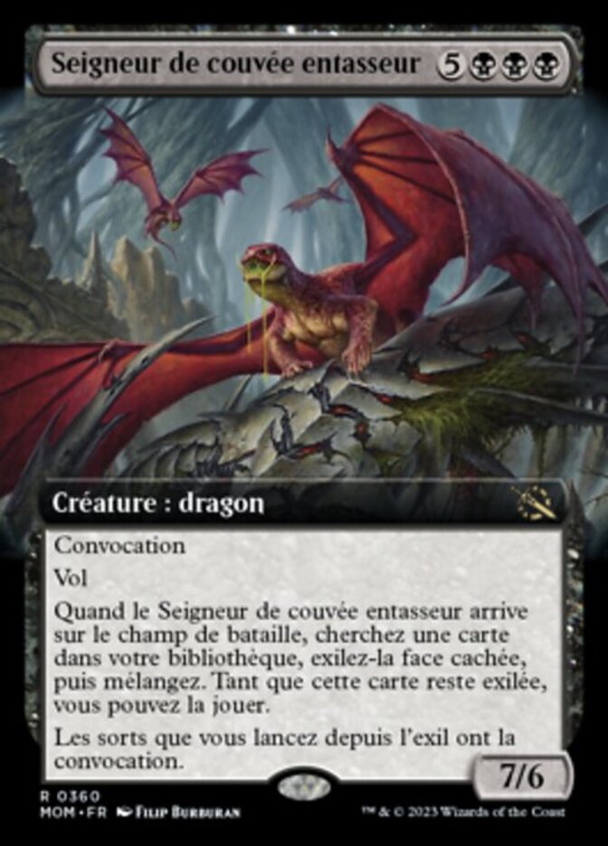 | Rules | Convoke Flying When Hoarding Broodlord enters the battlefield, search your library for a card, exile it face down, then shuffle. For as long as that card remains exiled, you may play it. Spells you cast from exile have convoke. |