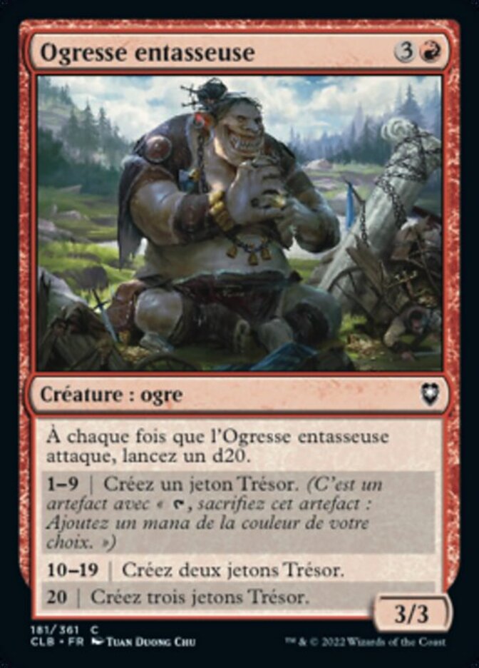 | Rules | Whenever Hoarding Ogre attacks, roll a d20. 1—9 | Create a Treasure token. (It's an artifact with ", Sacrifice this artifact: Add one mana of any color.") 10—19 | Create two Treasure tokens. 20 | Create three Treasure tokens. |