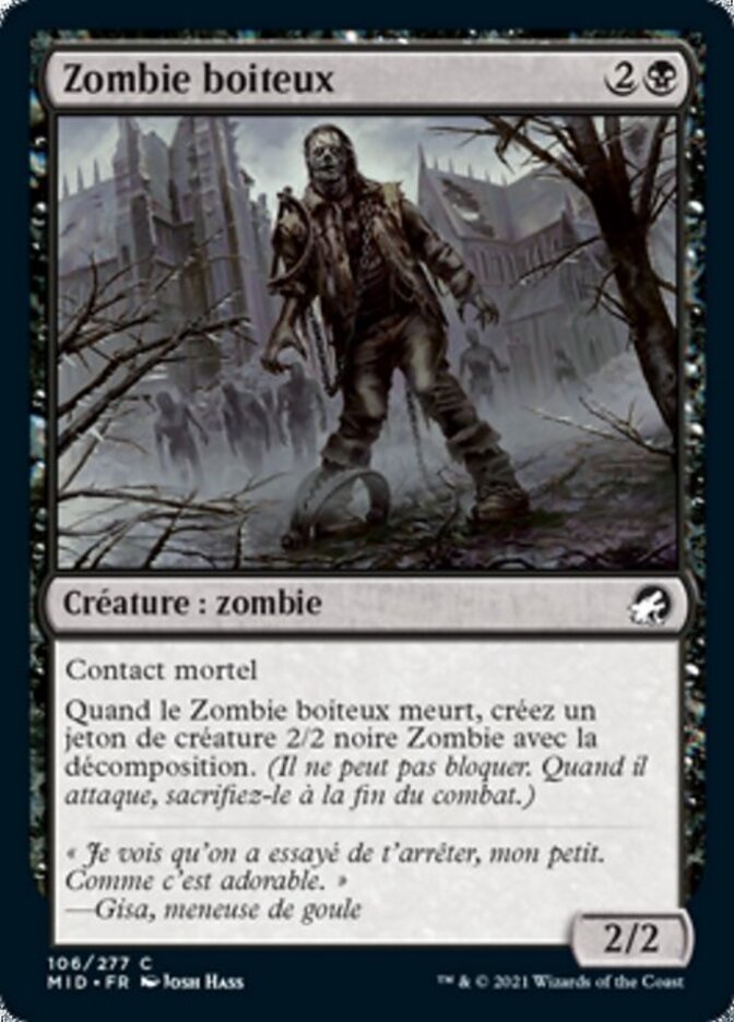 | Rules | Deathtouch When Hobbling Zombie dies, create a 2/2 black Zombie creature token with decayed. (It can't block. When it attacks, sacrifice it at end of combat.) |