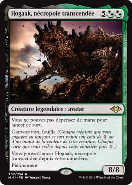 | Rules | You can't spend mana to cast this spell. Convoke, delve (Each creature you tap while casting this spell pays for or one mana of that creature's color. Each card you exile from your graveyard pays for .) You may cast Hogaak, Arisen Necropolis from your graveyard. Trample |