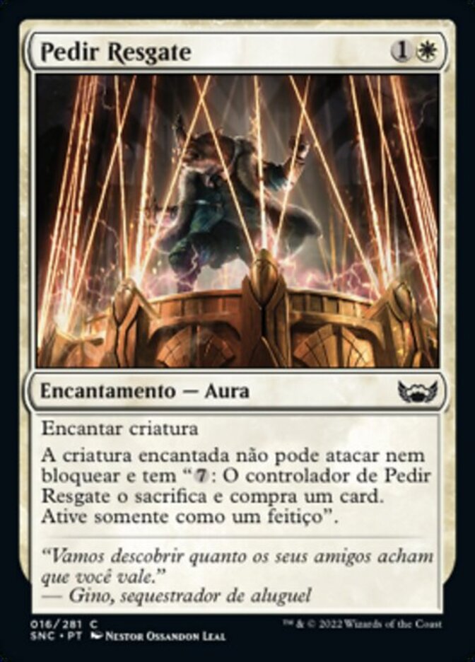 | Rules | Enchant creature Enchanted creature can't attack or block and has ": Hold for Ransom's controller sacrifices it and draws a card. Activate only as a sorcery." |