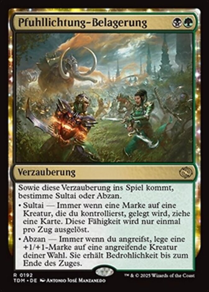 | Rules | As this enchantment enters, choose Sultai or Abzan. • Sultai — Whenever a counter is put on a creature you control, draw a card. This ability triggers only once each turn. • Abzan — Whenever you attack, put a +1/+1 counter on target attacking creature. It gains menace until end of turn. |