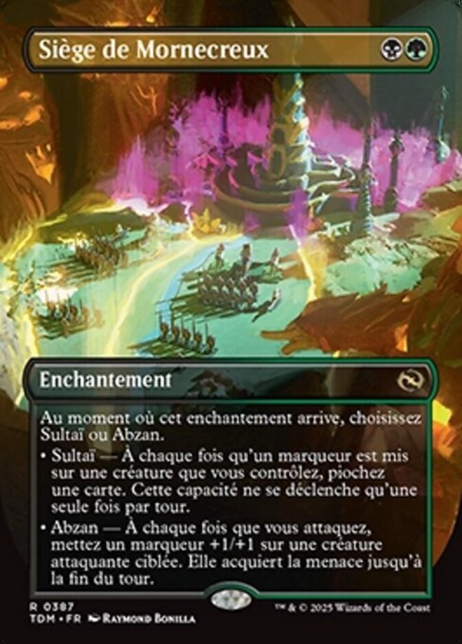 | Rules | As this enchantment enters, choose Sultai or Abzan. • Sultai — Whenever a counter is put on a creature you control, draw a card. This ability triggers only once each turn. • Abzan — Whenever you attack, put a +1/+1 counter on target attacking creature. It gains menace until end of turn. |