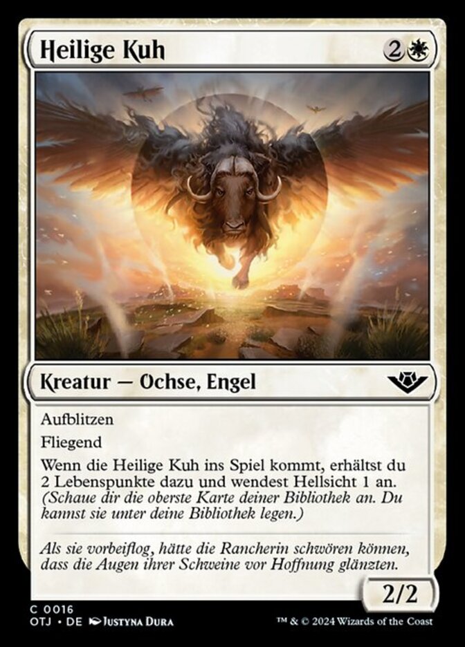 | Rules | Flash Flying When Holy Cow enters the battlefield, you gain 2 life and scry 1. (Look at the top card of your library. You may put that card on the bottom.) |