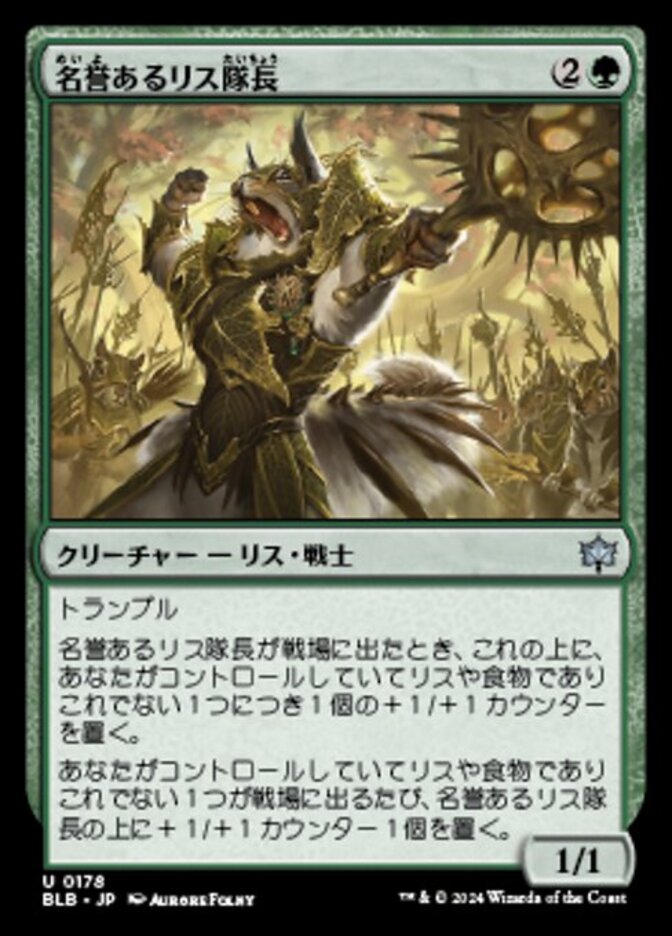 | Rules | Trample When Honored Dreyleader enters, put a +1/+1 counter on it for each other Squirrel and/or Food you control. Whenever another Squirrel or Food you control enters, put a +1/+1 counter on Honored Dreyleader. |