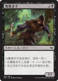 | Rules | When Hooded Assassin enters the battlefield, choose one — • Put a +1/+1 counter on Hooded Assassin. • Destroy target creature that was dealt damage this turn. |