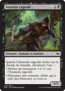 | Rules | When Hooded Assassin enters the battlefield, choose one — • Put a +1/+1 counter on Hooded Assassin. • Destroy target creature that was dealt damage this turn. |
