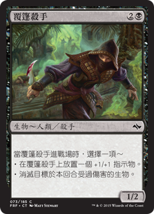 | Rules | When Hooded Assassin enters the battlefield, choose one — • Put a +1/+1 counter on Hooded Assassin. • Destroy target creature that was dealt damage this turn. |