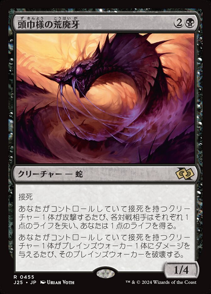 | Rules | Deathtouch Whenever a creature you control with deathtouch attacks, each opponent loses 1 life and you gain 1 life. Whenever a creature you control with deathtouch deals damage to a planeswalker, destroy that planeswalker. |