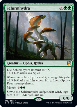 | Rules | Hooded Hydra enters the battlefield with X +1/+1 counters on it. When Hooded Hydra dies, create a 1/1 green Snake creature token for each +1/+1 counter on it. Morph As Hooded Hydra is turned face up, put five +1/+1 counters on it. |