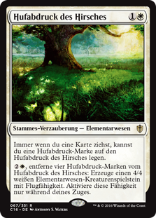 | Rules | Whenever you draw a card, you may put a hoofprint counter on Hoofprints of the Stag. , Remove four hoofprint counters from Hoofprints of the Stag: Create a 4/4 white Elemental creature token with flying. Activate only during your turn. |