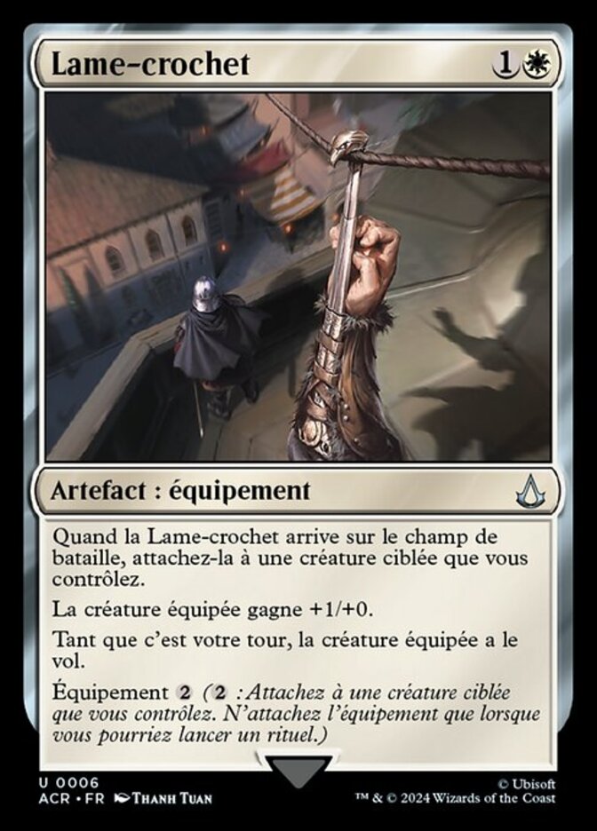 | Rules | When Hookblade enters the battlefield, attach it to target creature you control. Equipped creature gets +1/+0. As long as it's your turn, equipped creature has flying. Equip (: Attach to target creature you control. Equip only as a sorcery.) |