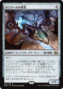 | Rules | Flying Sacrifice Hope of Ghirapur: Until your next turn, target player who was dealt combat damage by Hope of Ghirapur this turn can't cast noncreature spells. |