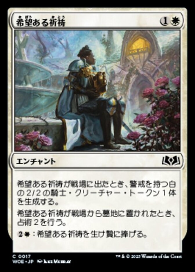 | Rules | When Hopeful Vigil enters the battlefield, create a 2/2 white Knight creature token with vigilance. When Hopeful Vigil is put into a graveyard from the battlefield, scry 2. : Sacrifice Hopeful Vigil. |