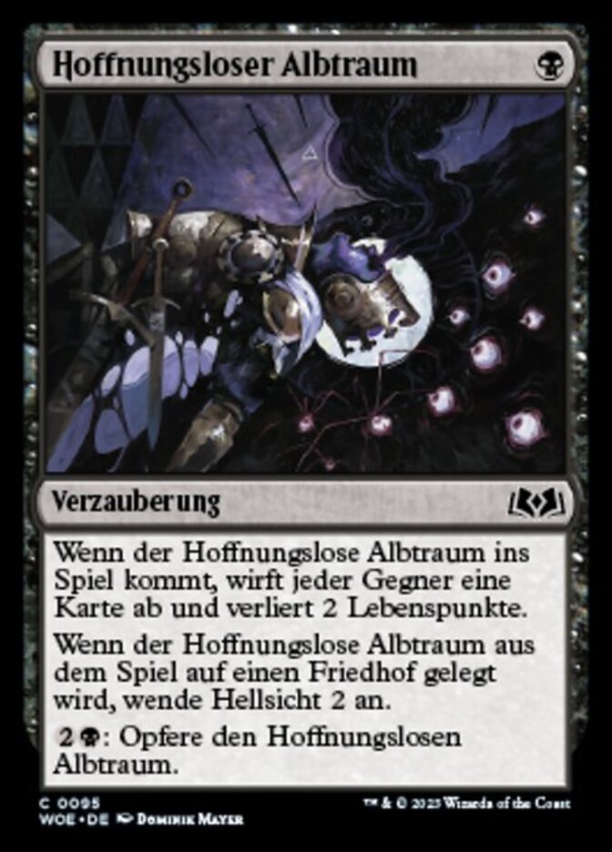 | Rules | When Hopeless Nightmare enters the battlefield, each opponent discards a card and loses 2 life. When Hopeless Nightmare is put into a graveyard from the battlefield, scry 2. : Sacrifice Hopeless Nightmare. |