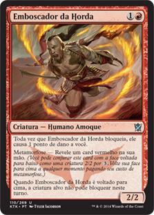 | Rules | Whenever Horde Ambusher blocks, it deals 1 damage to you. Morph—Reveal a red card in your hand. (You may cast this card face down as a 2/2 creature for . Turn it face up any time for its morph cost.) When Horde Ambusher is turned face up, target creature can't block this turn. |