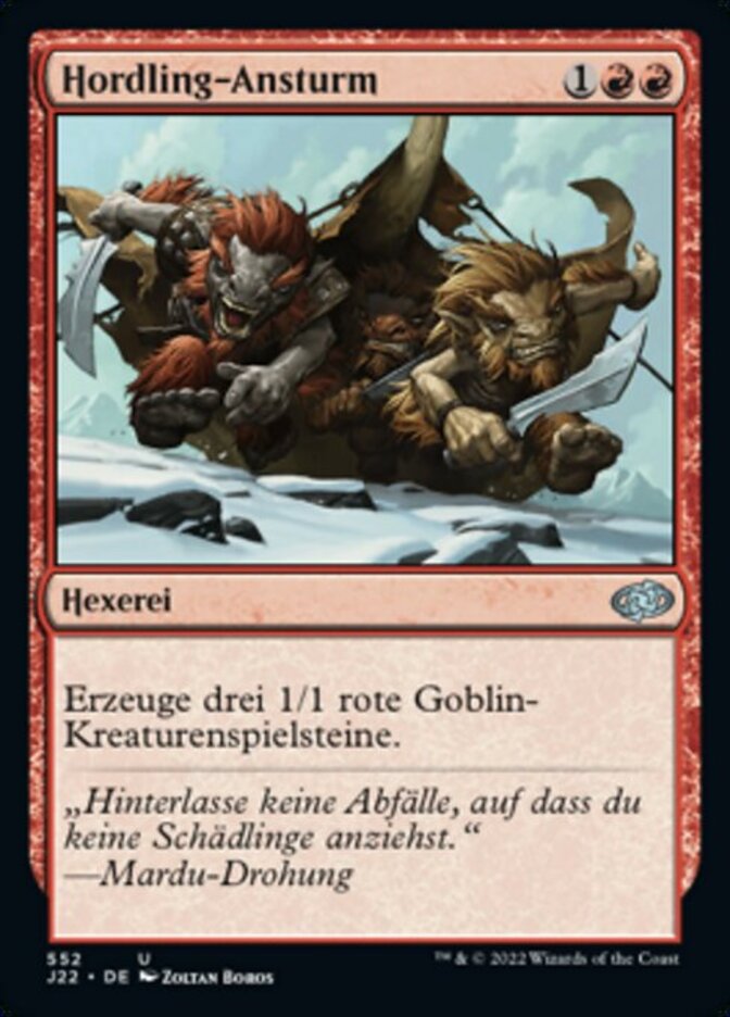 | Rules | Create three 1/1 red Goblin creature tokens. |