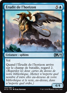 | Rules | Flying When Horizon Scholar enters the battlefield, scry 2. (Look at the top two cards of your library, then put any number of them on the bottom of your library and the rest on top in any order.) |