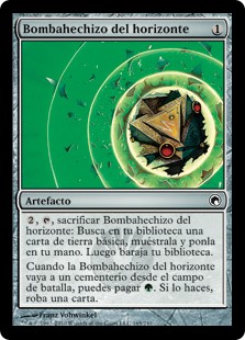 | Rules | , , Sacrifice Horizon Spellbomb: Search your library for a basic land card, reveal it, put it into your hand, then shuffle. When Horizon Spellbomb is put into a graveyard from the battlefield, you may pay . If you do, draw a card. |
