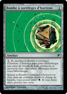 | Rules | , , Sacrifice Horizon Spellbomb: Search your library for a basic land card, reveal it, put it into your hand, then shuffle. When Horizon Spellbomb is put into a graveyard from the battlefield, you may pay . If you do, draw a card. |