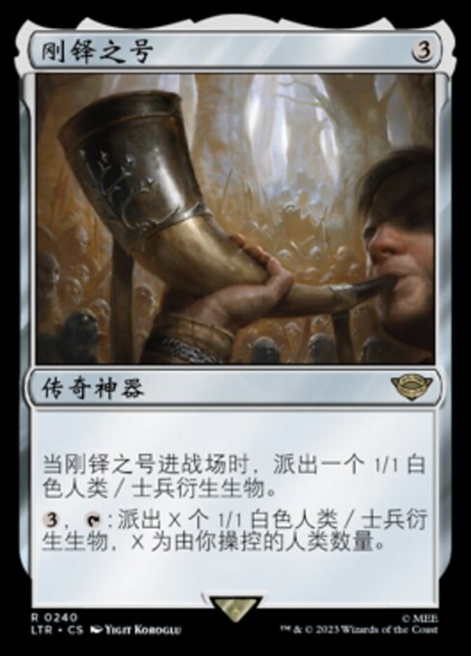 | Rules | When Horn of Gondor enters the battlefield, create a 1/1 white Human Soldier creature token. , : Create X 1/1 white Human Soldier creature tokens, where X is the number of Humans you control. |