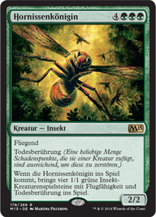| Rules | Flying Deathtouch (Any amount of damage this deals to a creature is enough to destroy it.) When Hornet Queen enters the battlefield, create four 1/1 green Insect creature tokens with flying and deathtouch. |