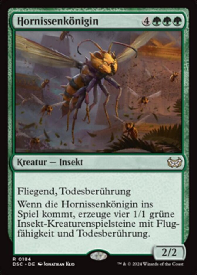| Rules | Flying Deathtouch (Any amount of damage this deals to a creature is enough to destroy it.) When Hornet Queen enters the battlefield, create four 1/1 green Insect creature tokens with flying and deathtouch. |