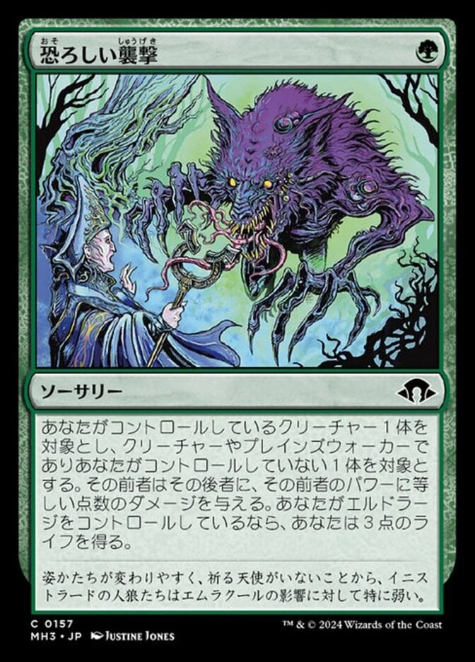 | Flavor | With shifting forms and no angel to pray to, Innistrad's werewolves were especially susceptible to Emrakul's influence. |
