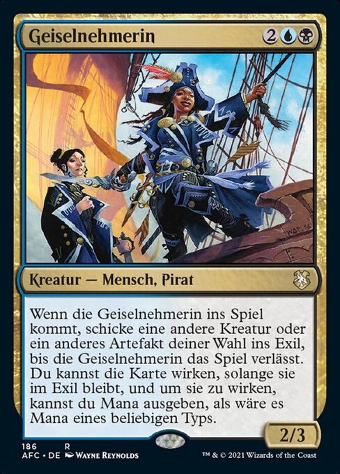 | Rules | When Hostage Taker enters the battlefield, exile another target creature or artifact until Hostage Taker leaves the battlefield. You may cast that card for as long as it remains exiled, and you may spend mana as though it were mana of any type to cast that spell. |