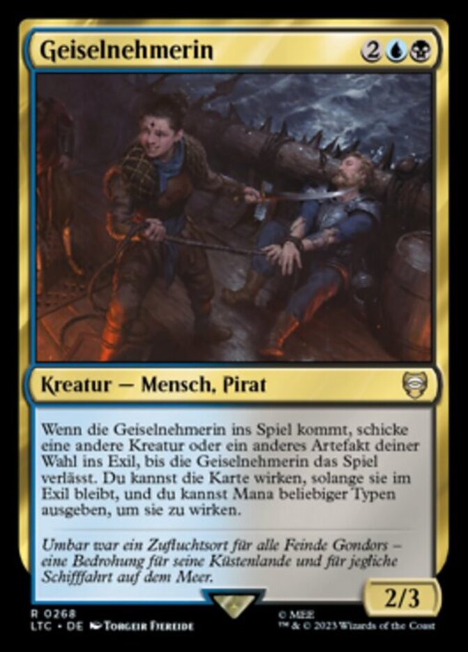 | Rules | When Hostage Taker enters the battlefield, exile another target creature or artifact until Hostage Taker leaves the battlefield. You may cast that card for as long as it remains exiled, and you may spend mana as though it were mana of any type to cast that spell. |