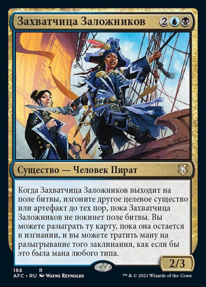 | Rules | When Hostage Taker enters the battlefield, exile another target creature or artifact until Hostage Taker leaves the battlefield. You may cast that card for as long as it remains exiled, and you may spend mana as though it were mana of any type to cast that spell. |