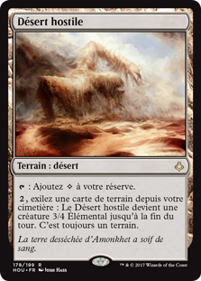 | Rules | : Add . , Exile a land card from your graveyard: Hostile Desert becomes a 3/4 Elemental creature until end of turn. It's still a land. |