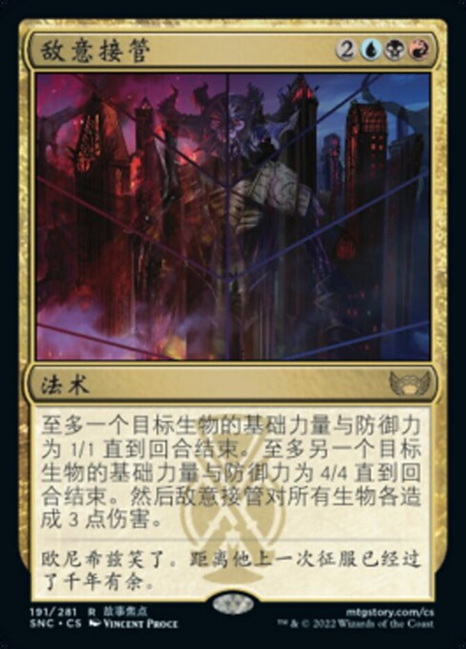 | Rules | Up to one target creature has base power and toughness 1/1 until end of turn. Up to one other target creature has base power and toughness 4/4 until end of turn. Then Hostile Takeover deals 3 damage to each creature. |