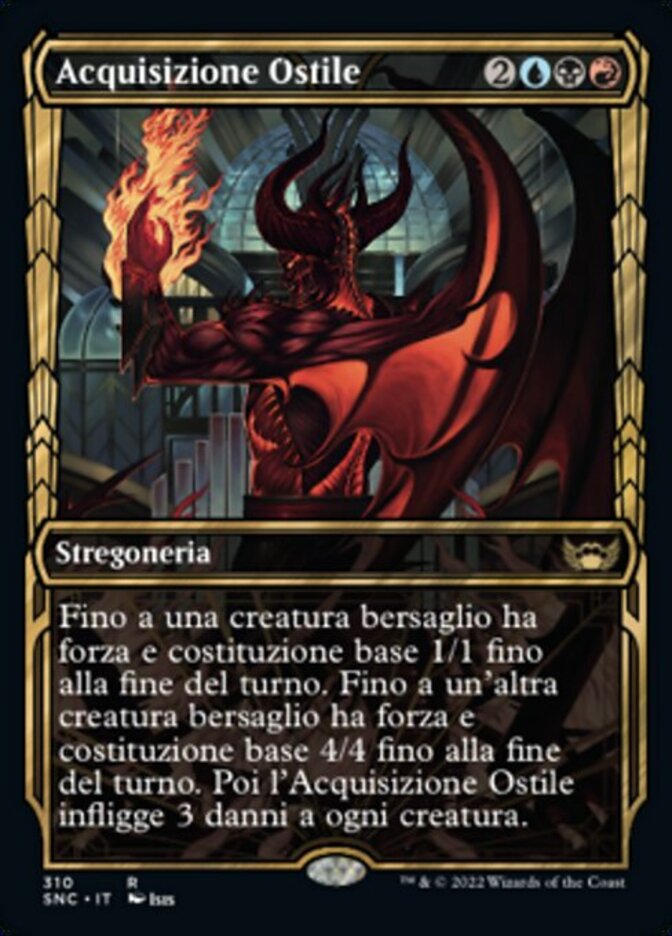 | Rules | Up to one target creature has base power and toughness 1/1 until end of turn. Up to one other target creature has base power and toughness 4/4 until end of turn. Then Hostile Takeover deals 3 damage to each creature. |