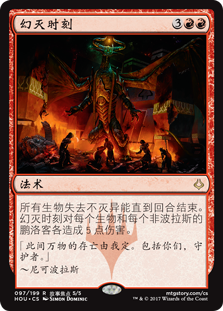 | Rules | All creatures lose indestructible until end of turn. Hour of Devastation deals 5 damage to each creature and each non-Bolas planeswalker. |
