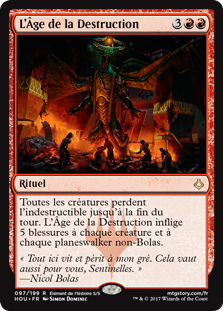 | Rules | All creatures lose indestructible until end of turn. Hour of Devastation deals 5 damage to each creature and each non-Bolas planeswalker. |