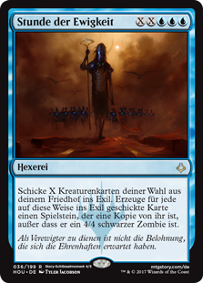 | Rules | Exile X target creature cards from your graveyard. For each card exiled this way, create a token that's a copy of that card, except it's a 4/4 black Zombie. |