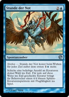 | Rules | Strive — This spell costs more to cast for each target beyond the first. Exile any number of target creatures. For each creature exiled this way, its controller creates a 4/4 blue Sphinx creature token with flying. |