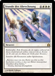 | Rules | Convoke (Your creatures can help cast this spell. Each creature you tap while casting this spell pays for or one mana of that creature's color.) Destroy all nontoken creatures. |